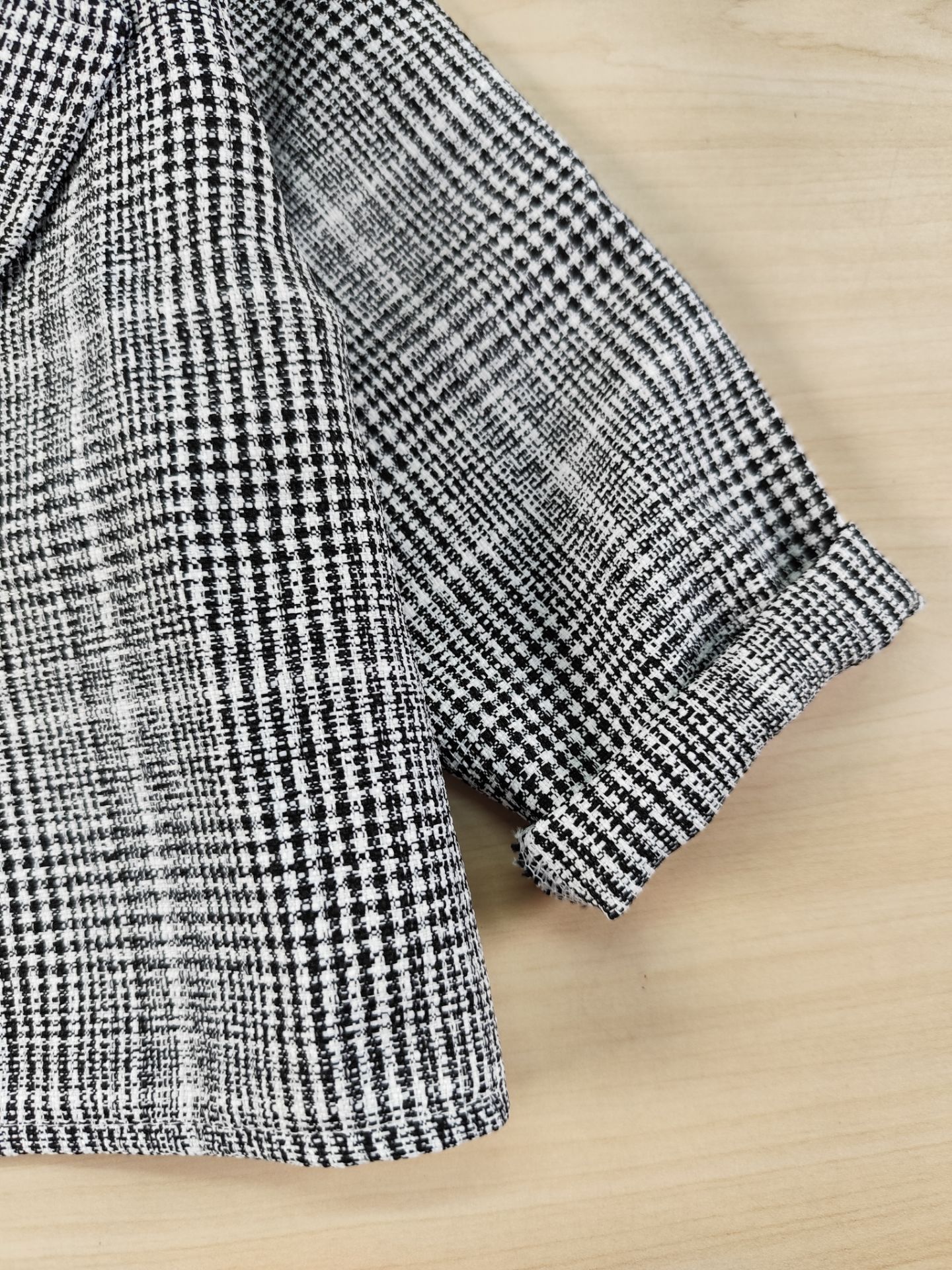 سایز ۴۰:قد ۳۳ پهنا ۳۳ آستین ۳۰ قدکراپ ۱۴ پهنا ۲۶ قد دامن ۳۰ دور کمر در حالت کشسانی ۶۰