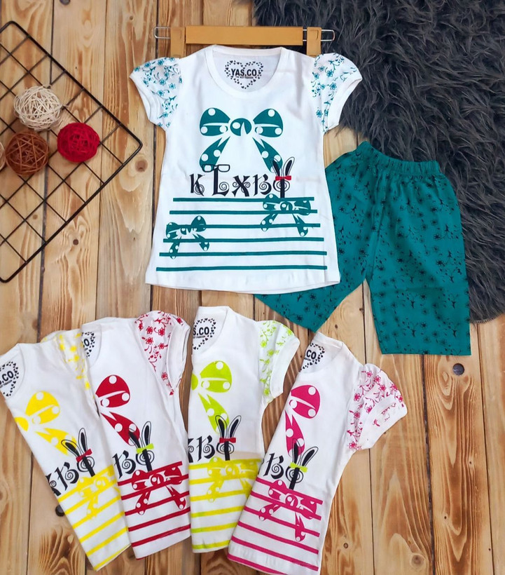 تیشرت شرت نخی دخترانه طرح پاپیون